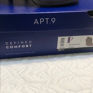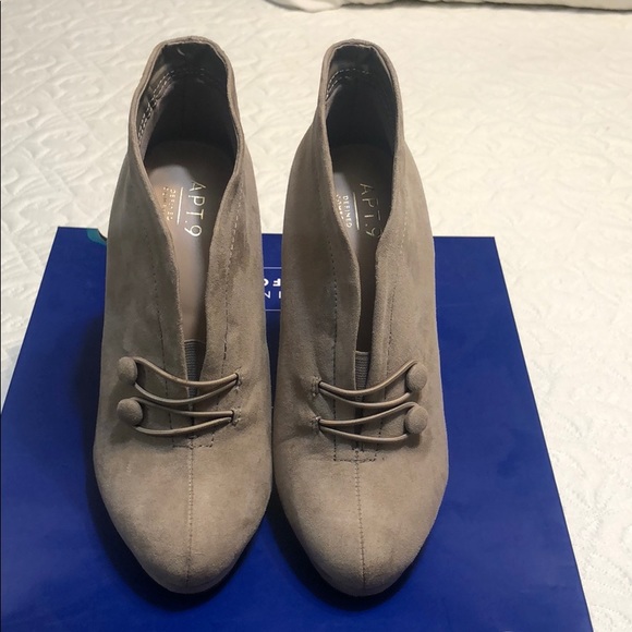 Brand New and Never been use Apt 9 Booties. They are a tan color and suede material! They are 4 inch heels and have a platform! They are defined comfort!