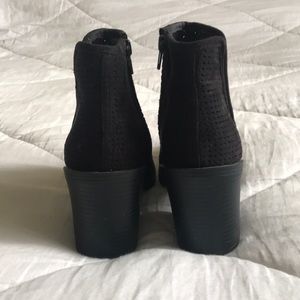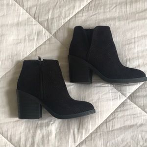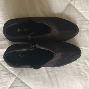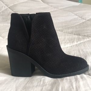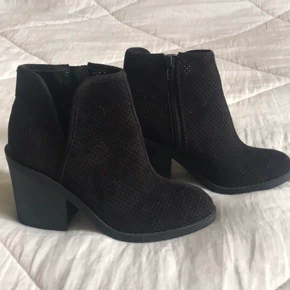 Black booties by Soda. Bought from someone else and they were just a tad too big. Size 5.5 but maybe more like a 6. Perfect condition! Have a soft Suede like feel to them.