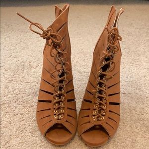 Brown suede open toe booties. Size 9. Never been worn.