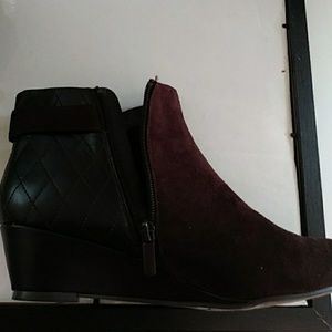 Cute Brown suede 1/2 in..bootie.. There are buckles located on the side to add beauty to the boots ...this boot also zips on the side for an easier fit. and the material has a criss cross designs throughout to enhance the look..( In excellent shape)...worn only one time...