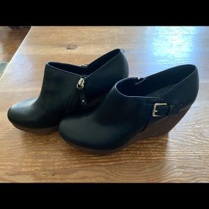 Dr. Scholls memory foam. Worn once. Perfect condition. Super cute wedge booties.
