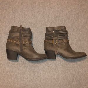 Gray booties. Worn one time. 10/10 condition. Leather braid and tassels. Make an offer