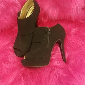 Black suede platform heels with side zip worn a handful of times excellent used condition