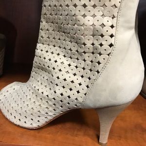 Soft perforated real suede open toe booties,, wear them with your favorite dress to your jeans!