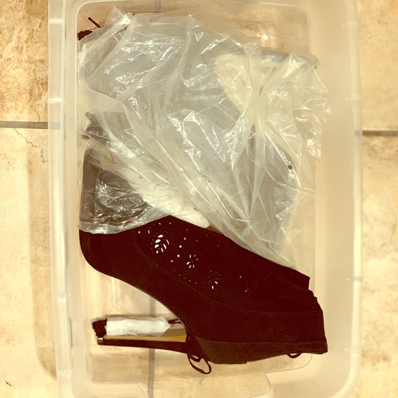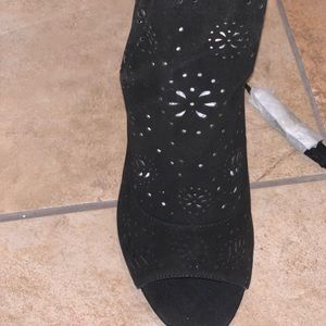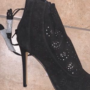 Size 8 Black suede tie up booties with tassels open toe