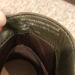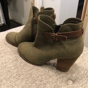 Size 8 green ankle booties. Side buckle decoration, zip up on inside. Only worn a few times great condition.