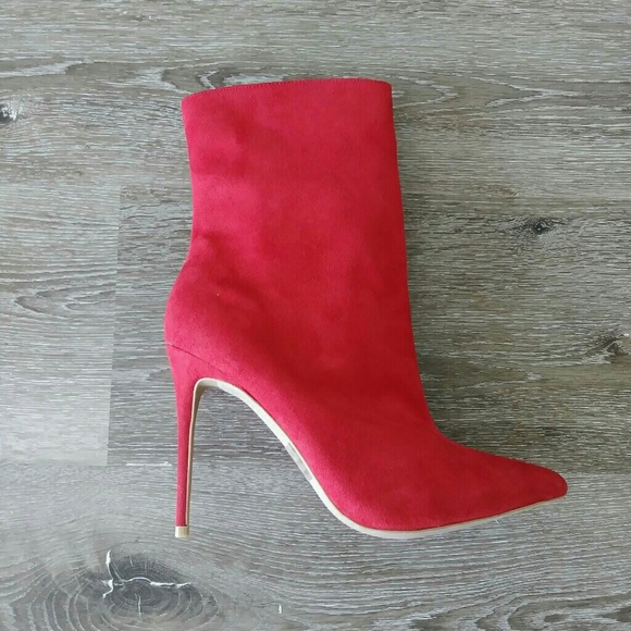 Red suede zip up booties