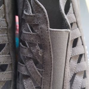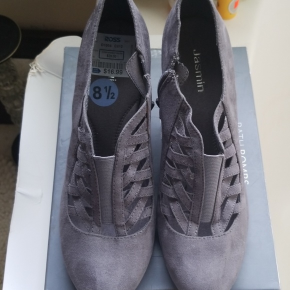 Comfortable gray booties with zipper and elastic. Great for work, church etc. Low comfortable heel