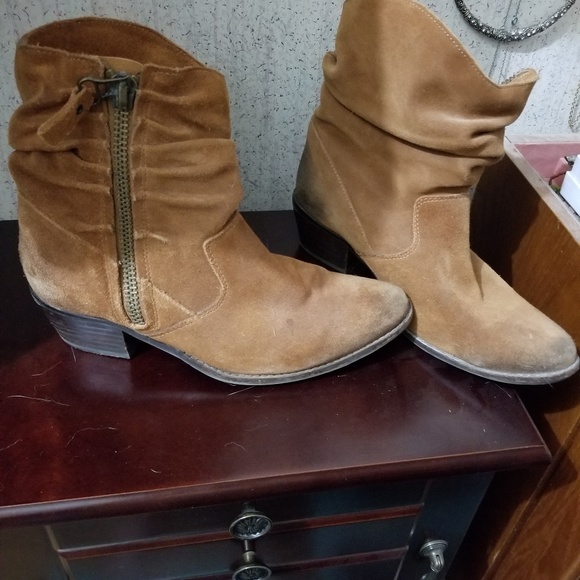 Distressed suede bootie. Side zip. In good condition.