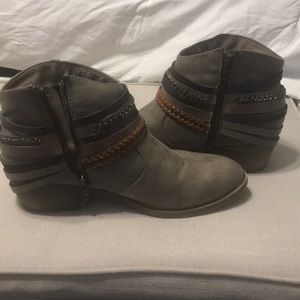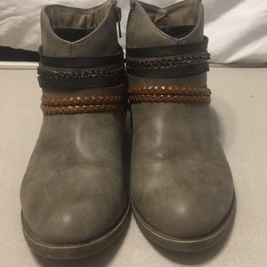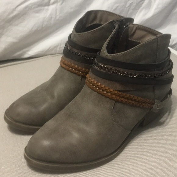 SO cute booties! Literally go with everything! I also have the same pair in black, also listed. After I had my babies my feet shrunk! 🤷🏼♀️ So sad to have to let them go because they’re so comfy!
