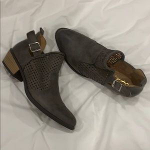 Olive/grey booties perfect with dresses, shorts, and jeans. Never worn.