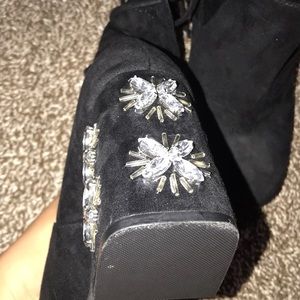 Worn once. Practically new. Black suede booties. Size 8 1/2. I have a thick foot so did not fit. Very cute!!! Pet and smoke free home.