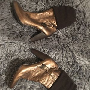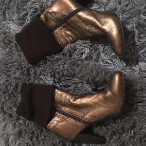 Brown and copper hand made real leather booties. Only worn once. Run small.