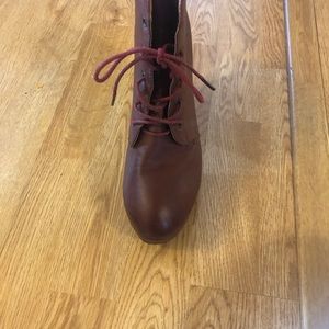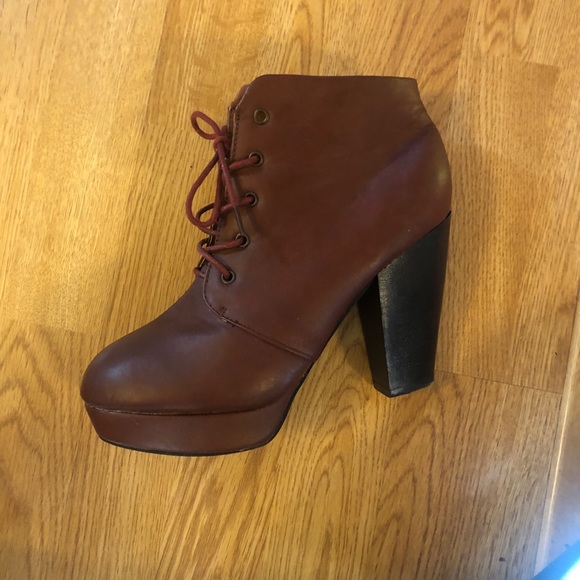 Brown/burgundy chunky boots with heels Lightly used but in good condition