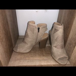 Tan suede booties, NWT, about 4 inch heel height