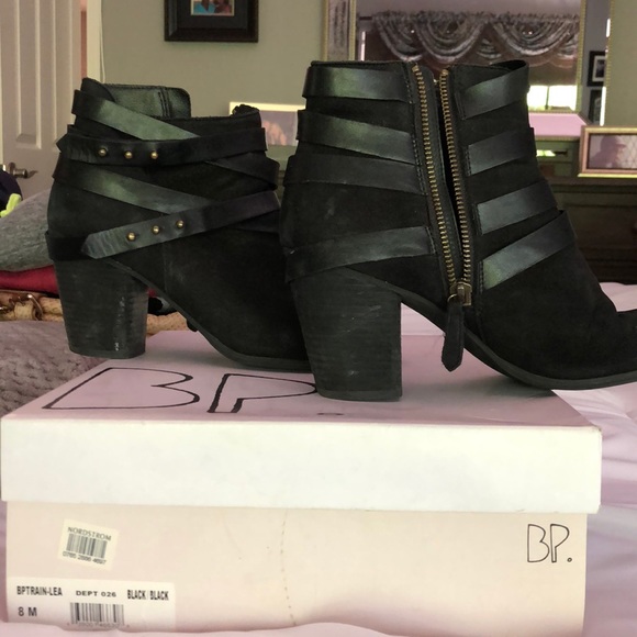 Super cute suede booties with side zip and detailing! Great condition-just a mark on side of heel (see pic). No wear on suede or bottom. So comfortable!