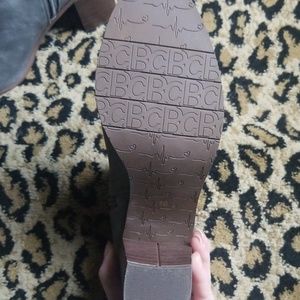 Grey, stacked heel booties with side zip