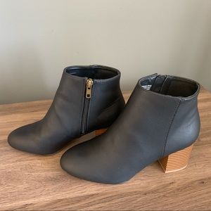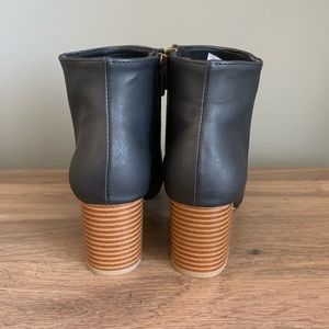 Black booties with a slight heel. Zips on the side.