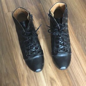Cute chunky heeled lace up black ankle booties