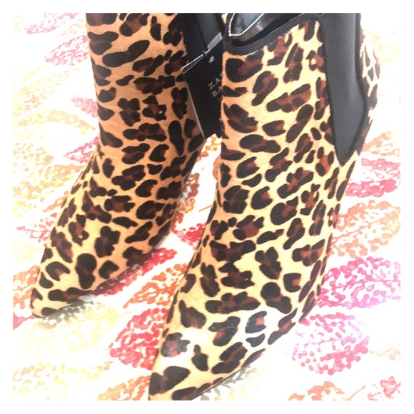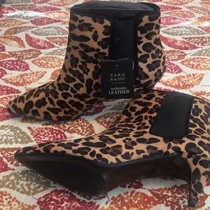 Leopard Booties Zara Authentic Leather Size 8 USA Never Worn Brand New with Tags
