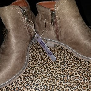 Brand new sand color low boots. They are a faux suede like fabric. They came in a box that said they are kids size. If you're an adult and have a small foot you may be able to fit these cute boots.
