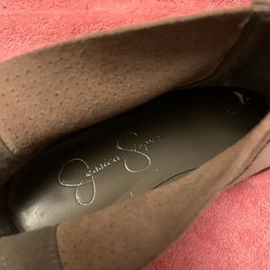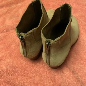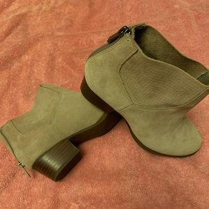 Great Condition! Worn only once. Camel colored ankle length booties with a back zip closure. These booties have a 1.5 inch heel and are quite comfortable if you’re doing a lot of standing and walking.