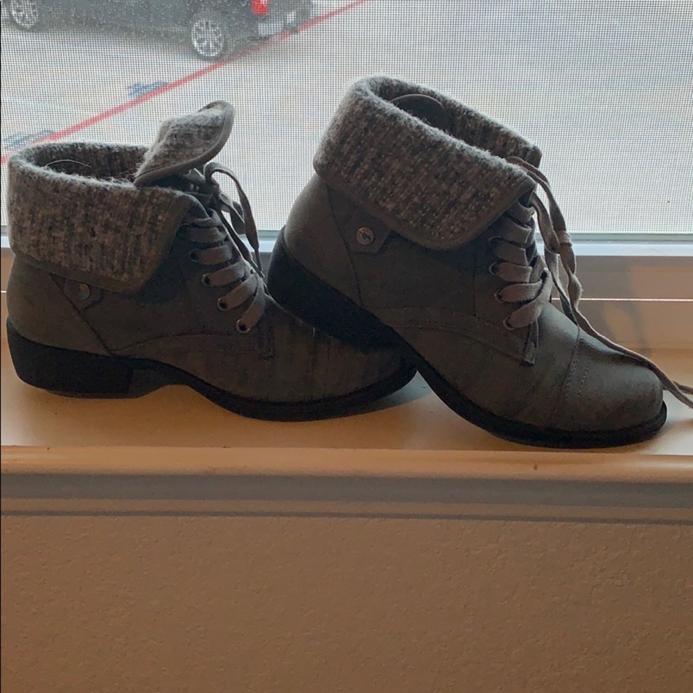 Grey leathered ankle booties with a warm interior. Wore one time! Look brand new.