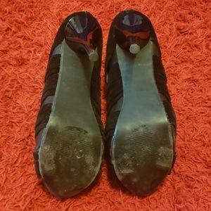 Black suede wrapped booties. Not sure on size, but fits an 8 or 8.5. No box