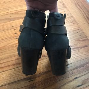 Dark grey rag & bone barrow wrap leather booties. Says European size 39 but fits a very narrow size 8 foot. Some scratching on ankle strap and worn on the bottom. Otherwise good condition