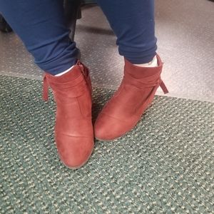 3" heel rust colored booties...only wore once zipper on the inside with a cute bow on the outside side of boot