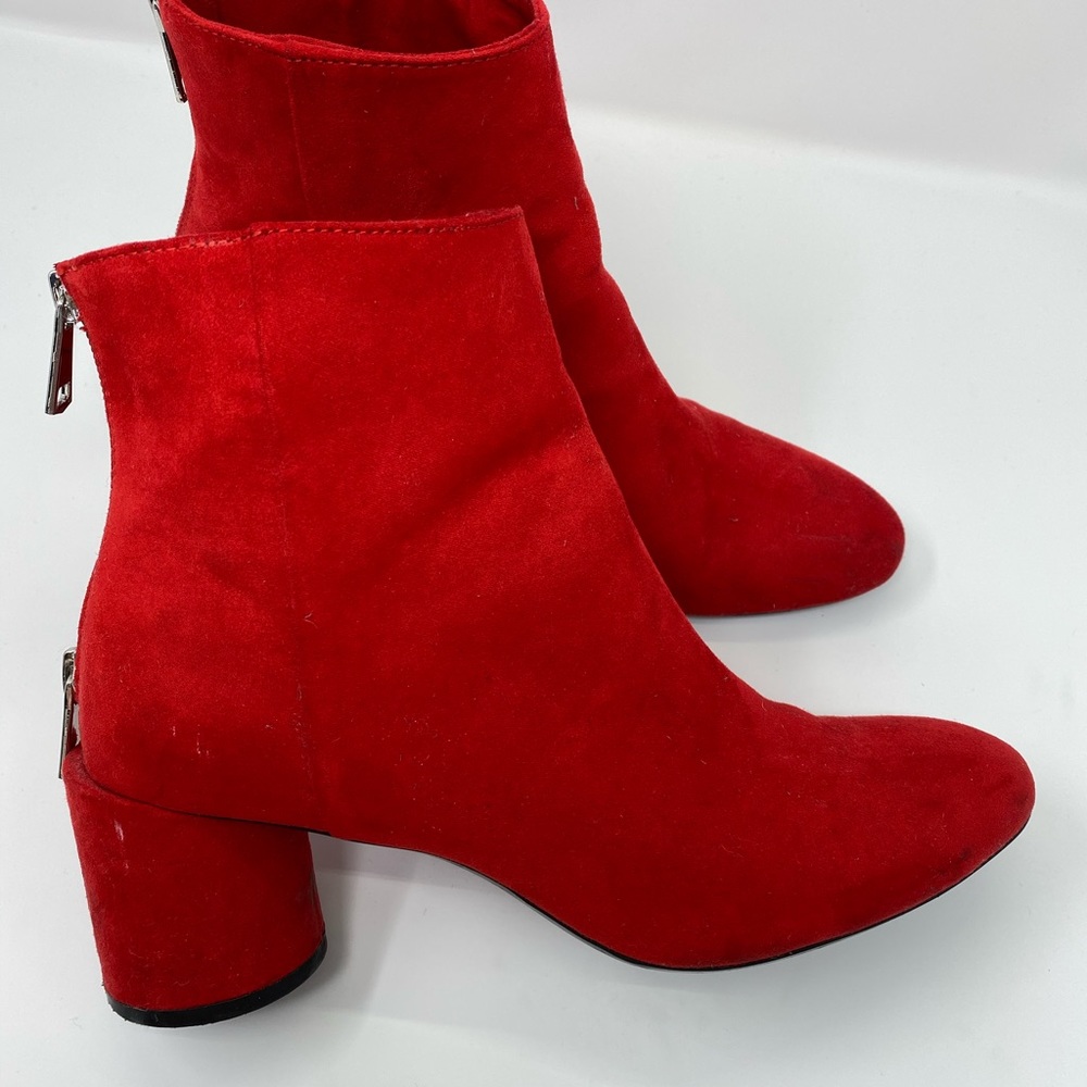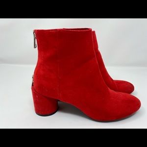 Red Faux Suede Confy Red Booties