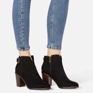 These are a pair of stylish boots, that are perfect for a night out. Only worn once. These boots are suede, has a cute buckle on the side and the heel is three inches. I also still have the box it came in.