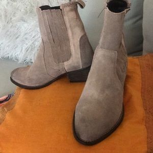 Intentional distressing highlights the striking textural interplay across a block-heel Chelsea bootie made for comfort with a well-cushioned footbed. 1 3/4" heel (size 8.5). 6" shaft. Pull-on style with elastic-gore insets. 3mm cushioned footbed. Leather upper/synthetic lining and sole. Imported