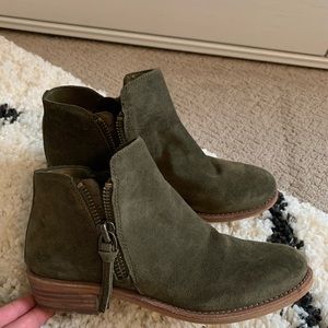 Olive green leather suede booties gently used, great shape