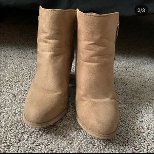 Brown suede booties with heel, zipper is functional. Worn once just need to be cleaned