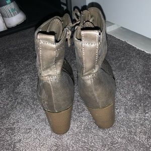 Size 9 slightly worn heeled booties. In pretty good condition and only worn a handful of times, selling because I have no use for them.