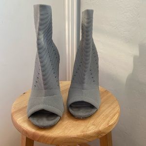 Grey, sock like heels, very comfortable. Worn 2x max. No box!