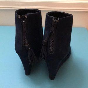 Worn these booties maybe 3 times, they are like new! Navy suede heel with tassel back zips. Really cute!