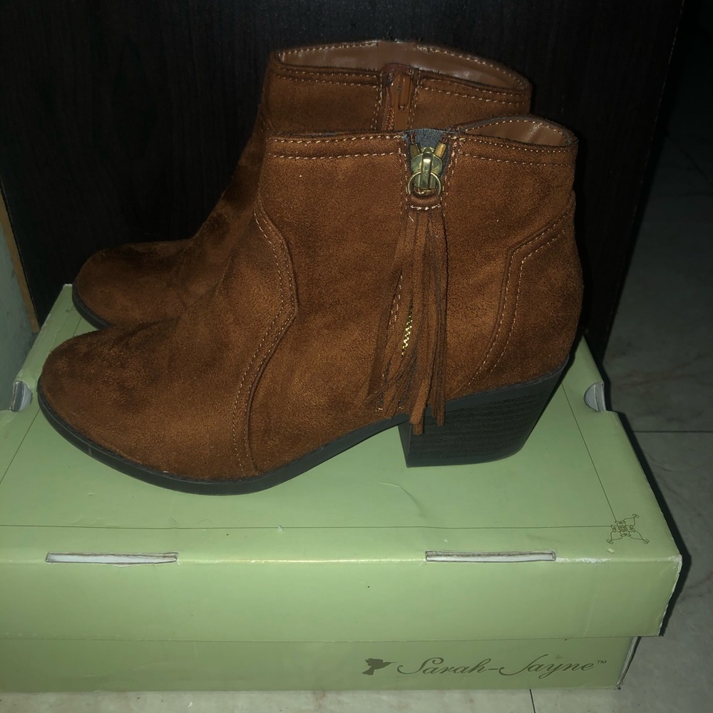 Suede booties. Size 4 youth converts to 6 in women’s. Tan color. Worn 3 time’s. Perfect condition. Box included.