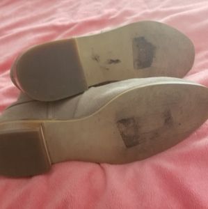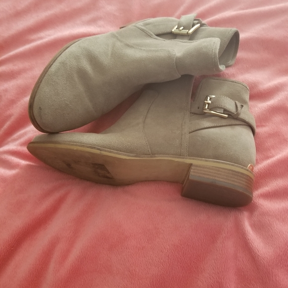 Suede booties just above the ankle. Right toe has a small black scuff as you can see in 1st picture. Super cute and comfy.