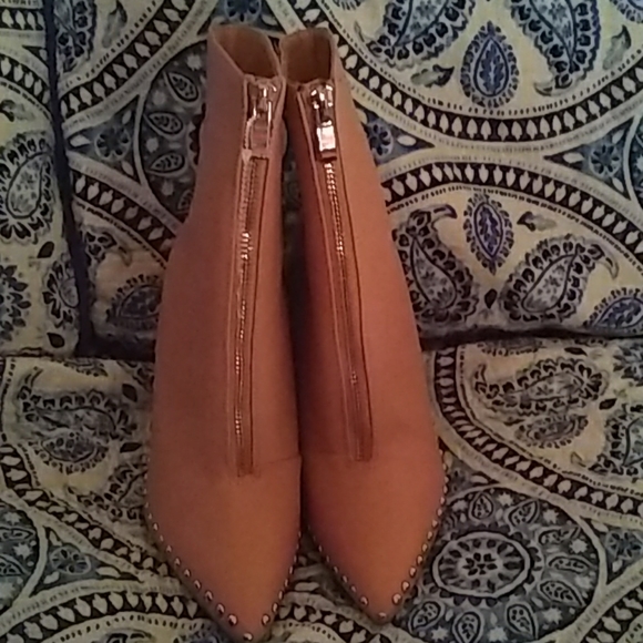 NEW WITHOUT TAGS - Pink Studded Booties with Front Zipper. Heel is approximately 4 1/2 inches. Never worn just have been tried on and walked around in house. Two small holes on inner side of each boot whate store had them attached.