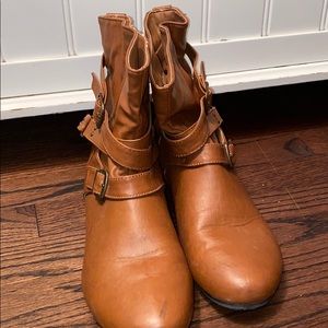 Amazing booties. Been worn a couple times only and super comfortable. Minor scuff marks (two). The buckles on the side are in tact and work great.