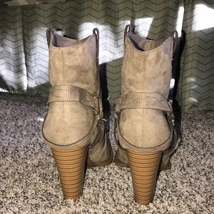 JustFab booties in a taupe color. I liked them but were just a bit too big for me. Brand new, never worn.