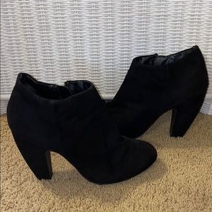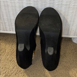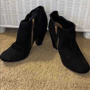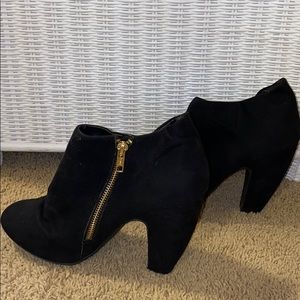 Used black booties with gold zipped on inner sides. Comfortable and easy to put on.