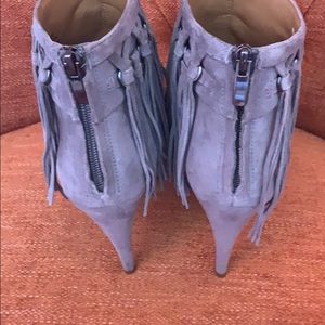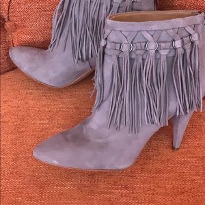 Gray suede bootie w/fringes