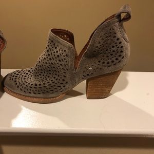 Suede Taupe color ankle booties. Great condition super comfortable, chunky heel.
