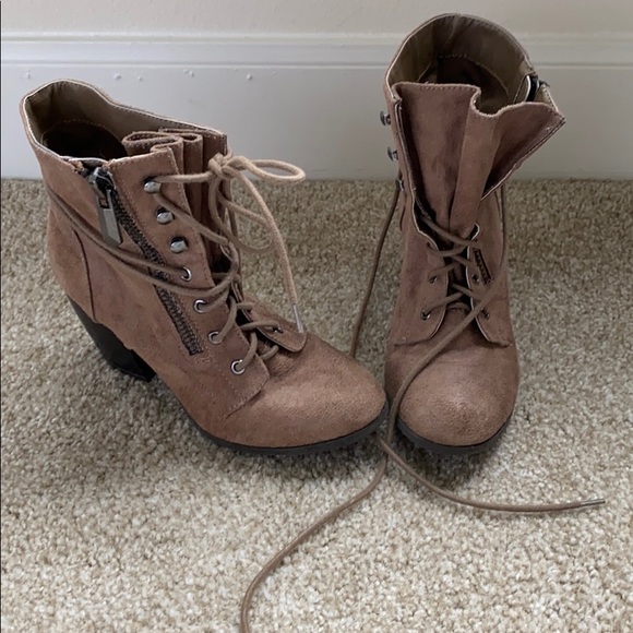 Lace up and zip on side faux suede material