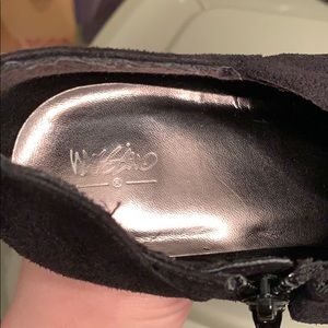 Heeled booties. In good shape with the exception of stain on left heel. See picture. Heel is 4 inches.