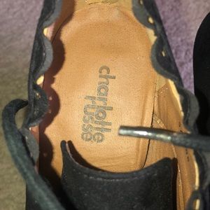 Charlotte Russe black booties with high heels.