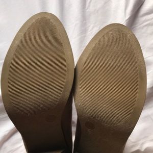 Wore these for a few minutes before I decided that I couldn’t actually walk in heels! My loss is your gain. THEY ARE ADORABLE!! Perfect shade of beige! Perfect for Summer or Fall! I wish I was more graceful in heels so that I could keep them! Only flaw is little scuff, as shown in picture #3. Make me an offer😊